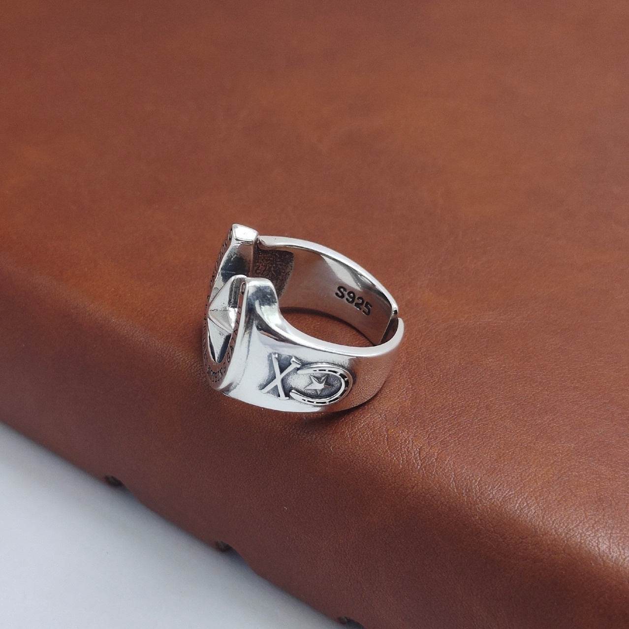 S925 Sterling Silver Pentagram Ring Men - Mubimart