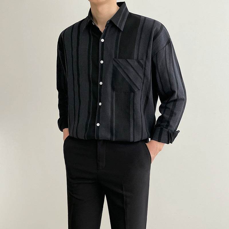 Black Shirt Men's Long-sleeved Jacket Casual Shirt