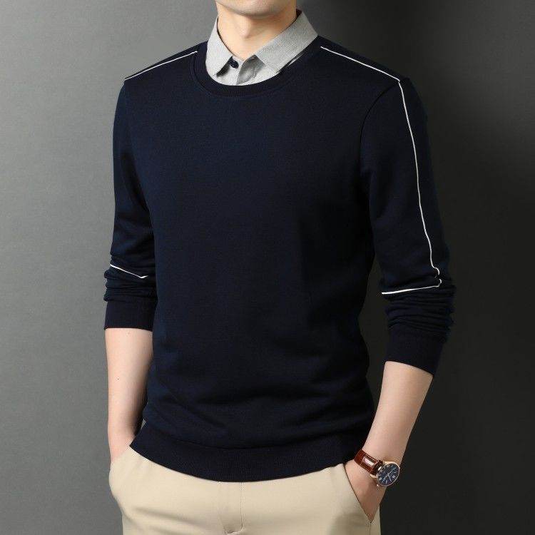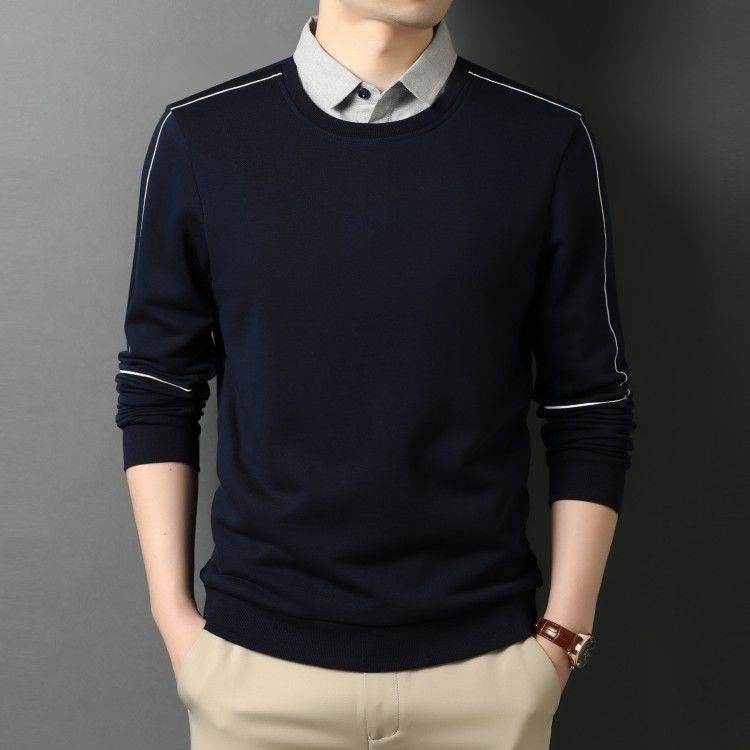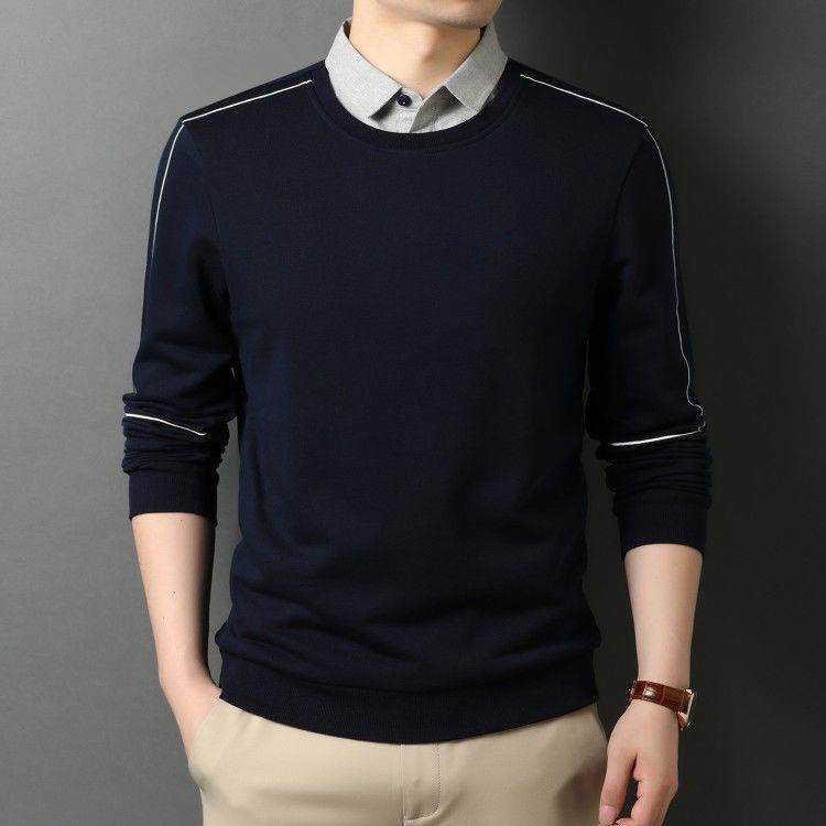 Shirt Collar Fake Two Piece Mens Long Sleeve Jacket