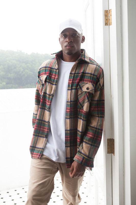 Knitted Woolen Shirt Jacket Hip-hop Plaid Shirt - Mubimart