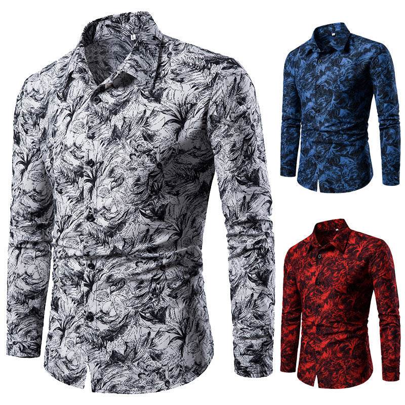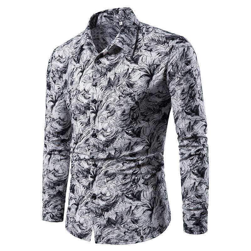 Autumn and Winter Mens Shirt Printed Casual Long Sleeved Shirt Slim Fit Male Social Dress Shirt For Men
