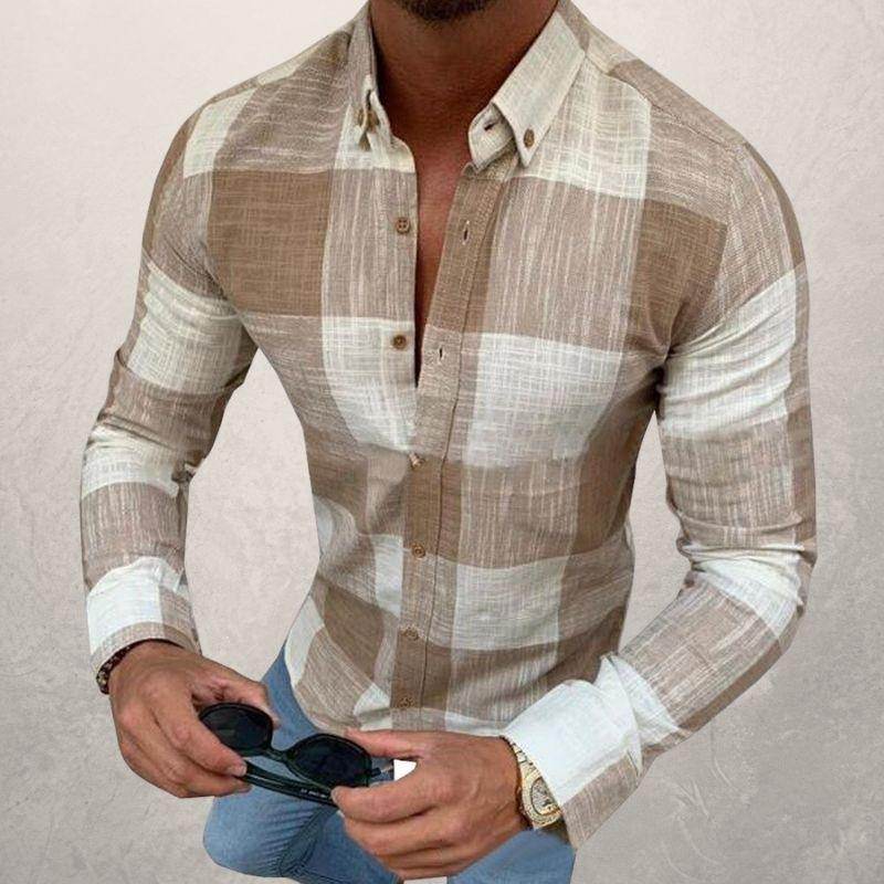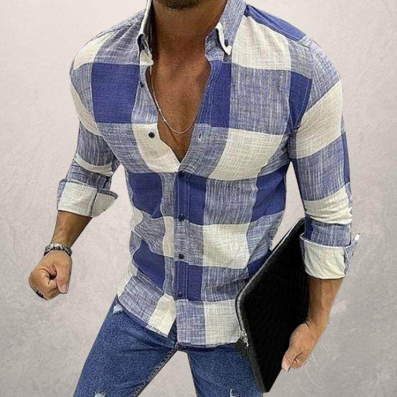 Button-down long sleeve men's casual shirt - Mubimart