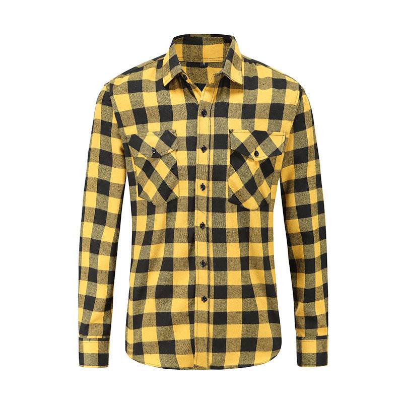 Flannel Double Pocket Men's Plaid Brushed Long Sleeved Shirt