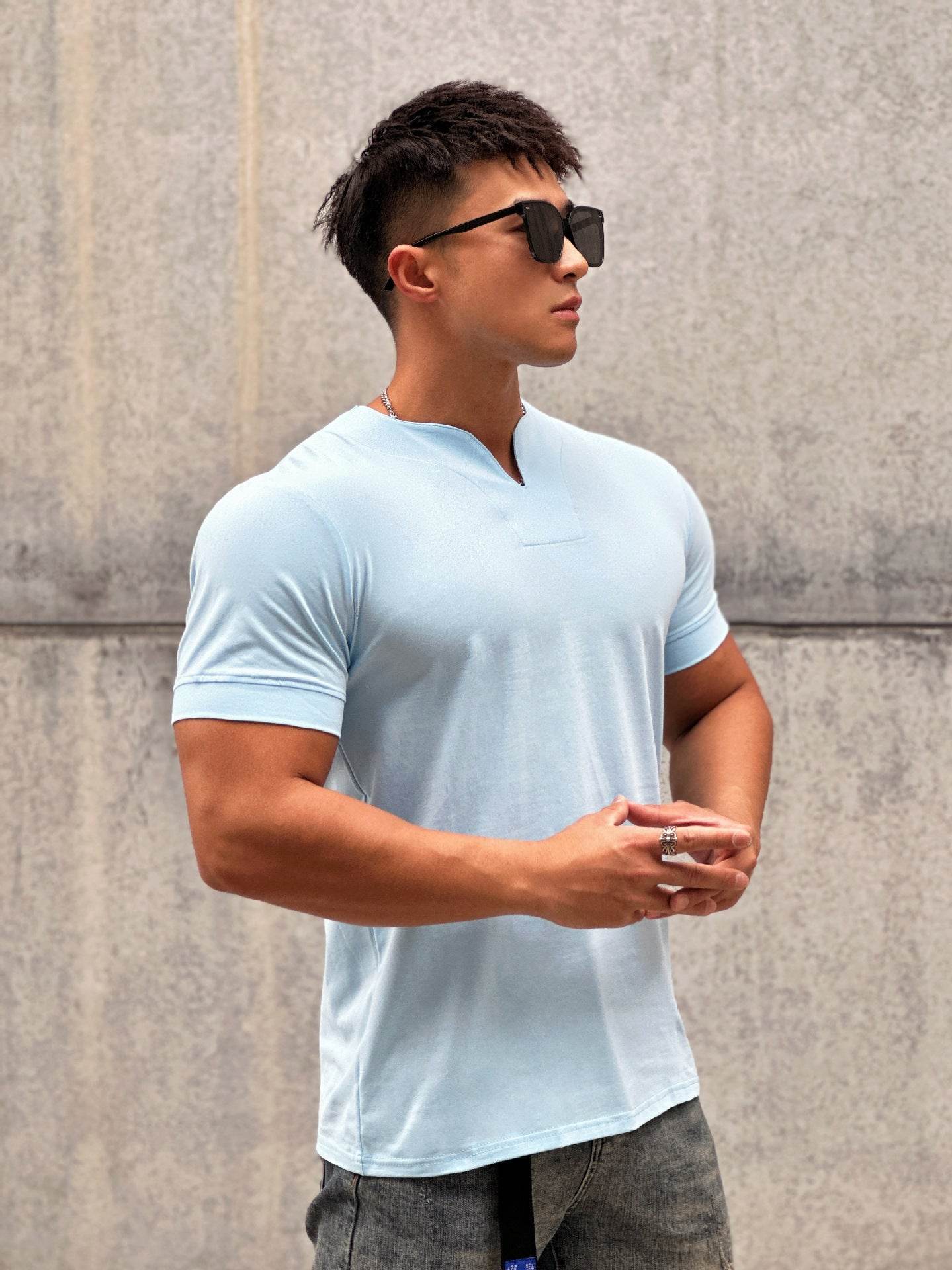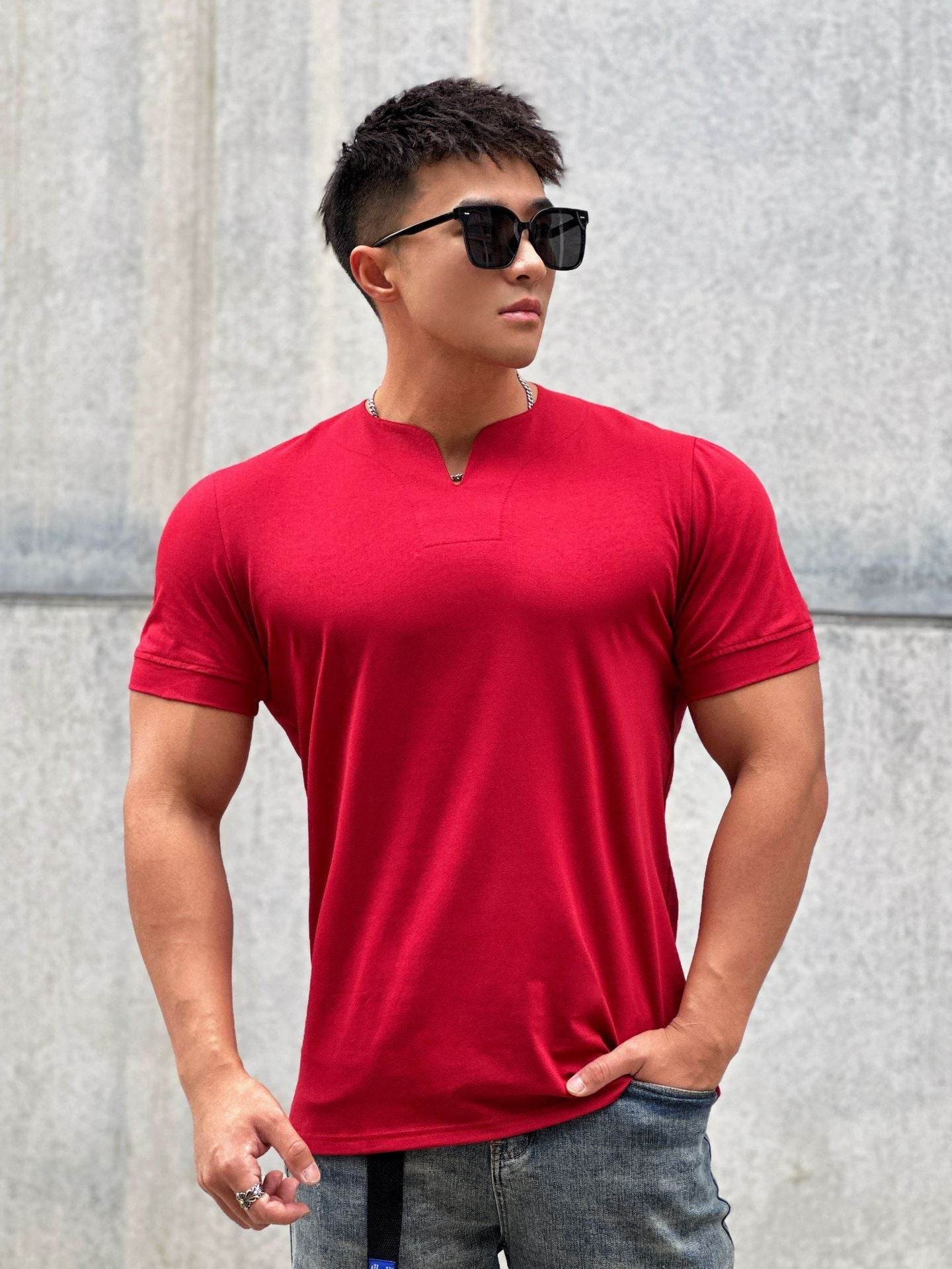 Men's Fashion Loose V-neck Short-sleeved Shirt Workout Exercise T-shirt