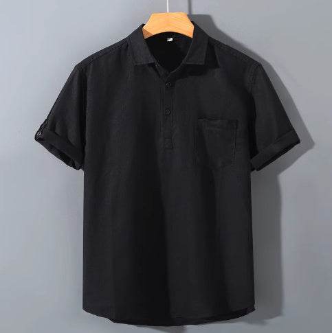Ummer Men's Linen Shirt Simple Pullover Lapel Men's Linen Shirt C028