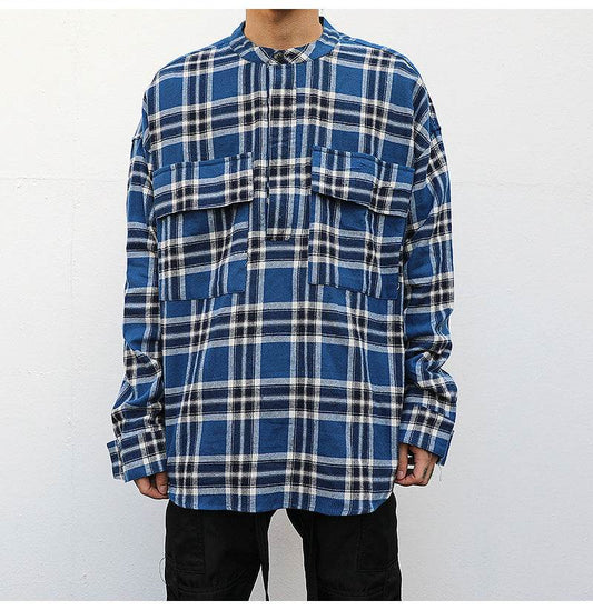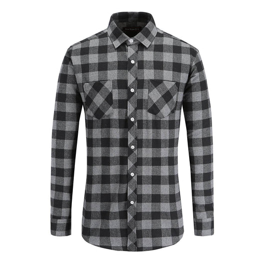 European And American Autumn And Winter Leisure Long Sleeve Flannel Plaid Pocket Shirt