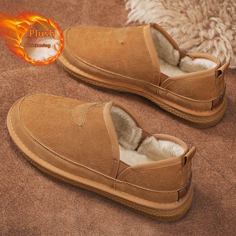V-cut Fleece Snow Boots Winter Warm Round-toed Suede Ankle Boot Fashion Simple Non-slip Flat Cotton Shoes For Men