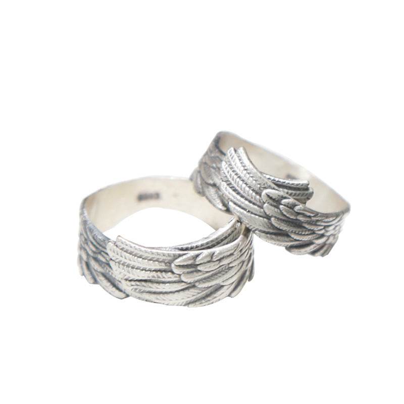 990 Sterling Silver Ring, Live Mouth Pure Silver Feather Couple Sterling Silver Ring Pair Ring