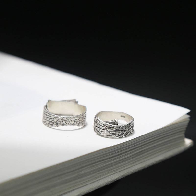 990 Sterling Silver Ring, Live Mouth Pure Silver Feather Couple Sterling Silver Ring Pair Ring - Mubimart