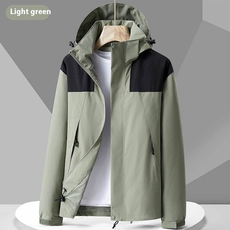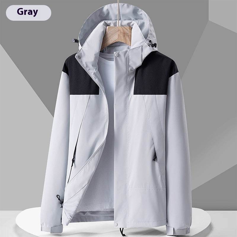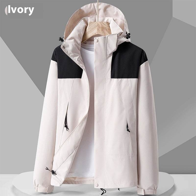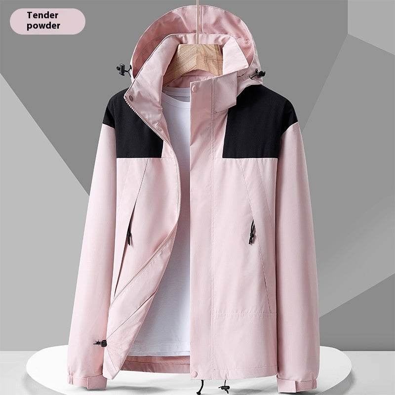 Hooded Windbreaker Unisex Fashion Colorblock Zip-up Jacket With Pockets Waterproof Outwear For Women Men Clothing - Mubimart