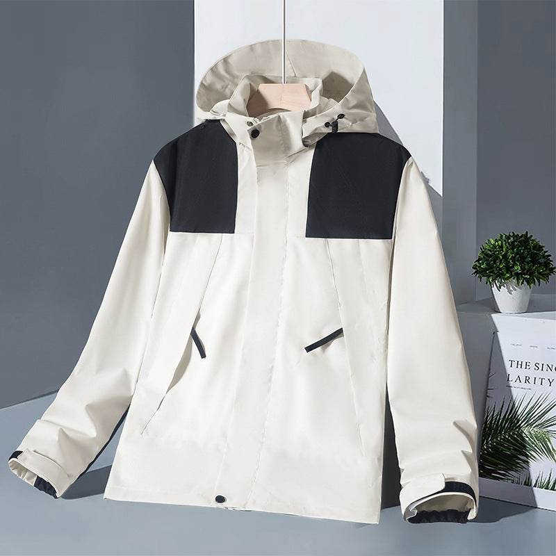 Hooded Windbreaker Unisex Fashion Colorblock Zip-up Jacket With Pockets Waterproof Outwear For Women Men Clothing