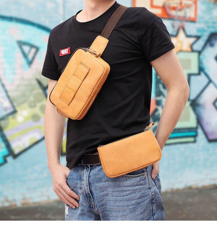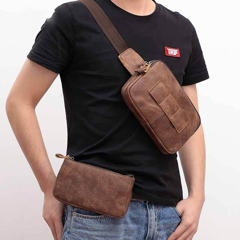 Men Waist Bag Pack Casual Functional Money Phone Belt Bag Male Unisex Sling Bag For Belt Leather Hip Bag Chest Phone Purse