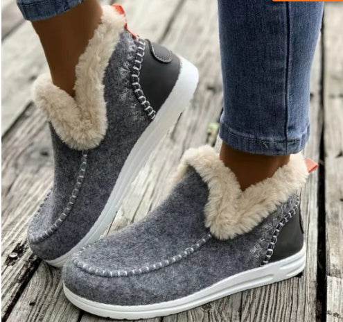 Fleece-lined Thick Plush Boots Warm Sewing Flat Cotton Shoes Winter Ankle Boot