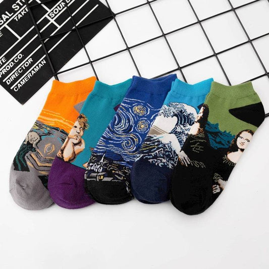 Retro Artistic Oil Painting All Cotton Low Cut Socks - Mubimart