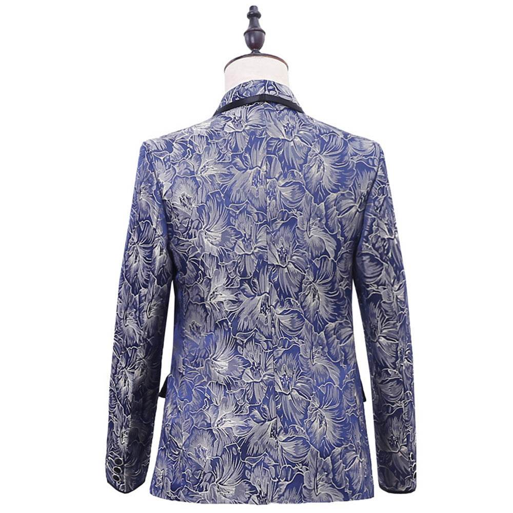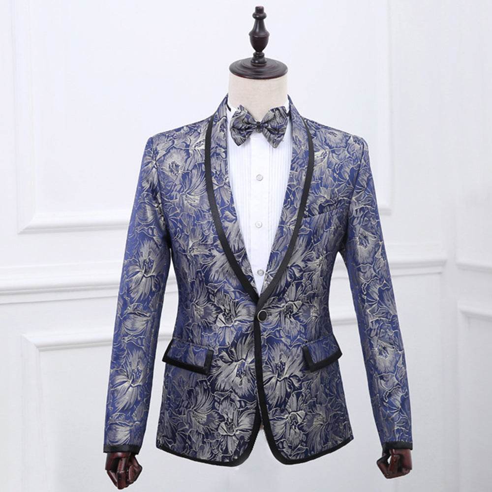 Best Man''s Dress Blue Brocade Suit One Button Green Fruit Collar With Black Edge British Men''s Two Piece Suit - Mubimart