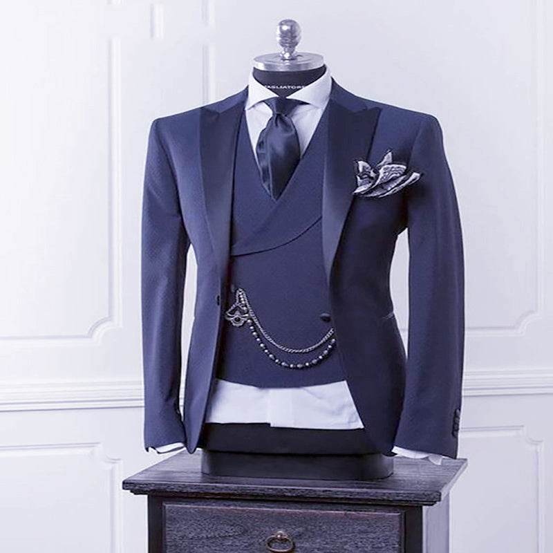 Navy Blue Men Blazer Business Modern Men Suit With Pants - Mubimart