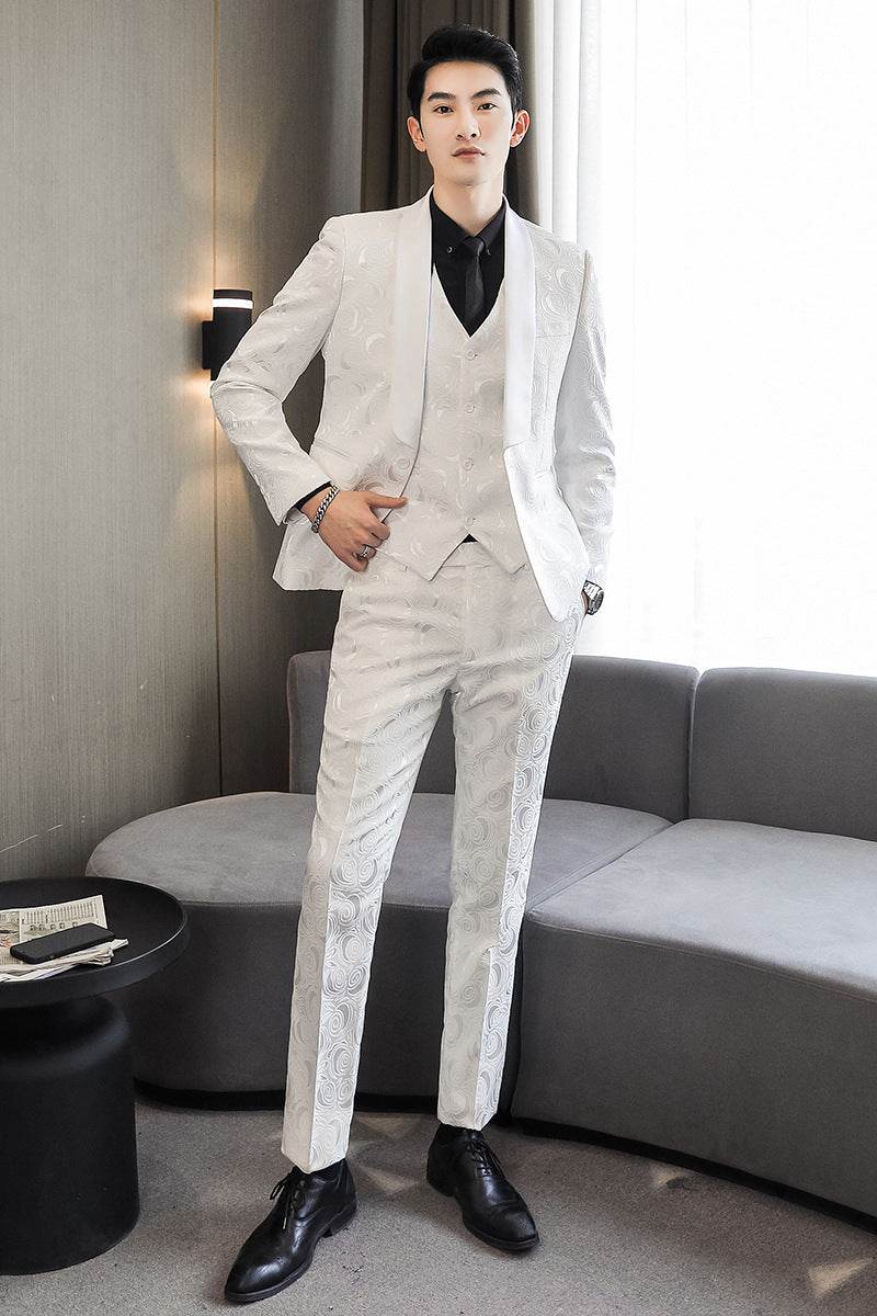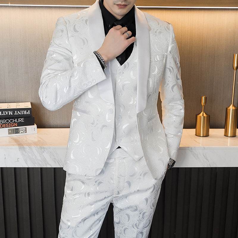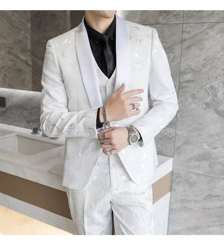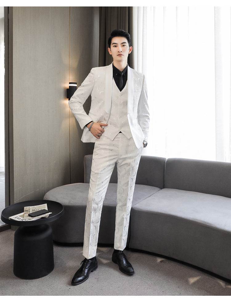 Wedding Embossed Dress Suit Three-piece Suit For Men
