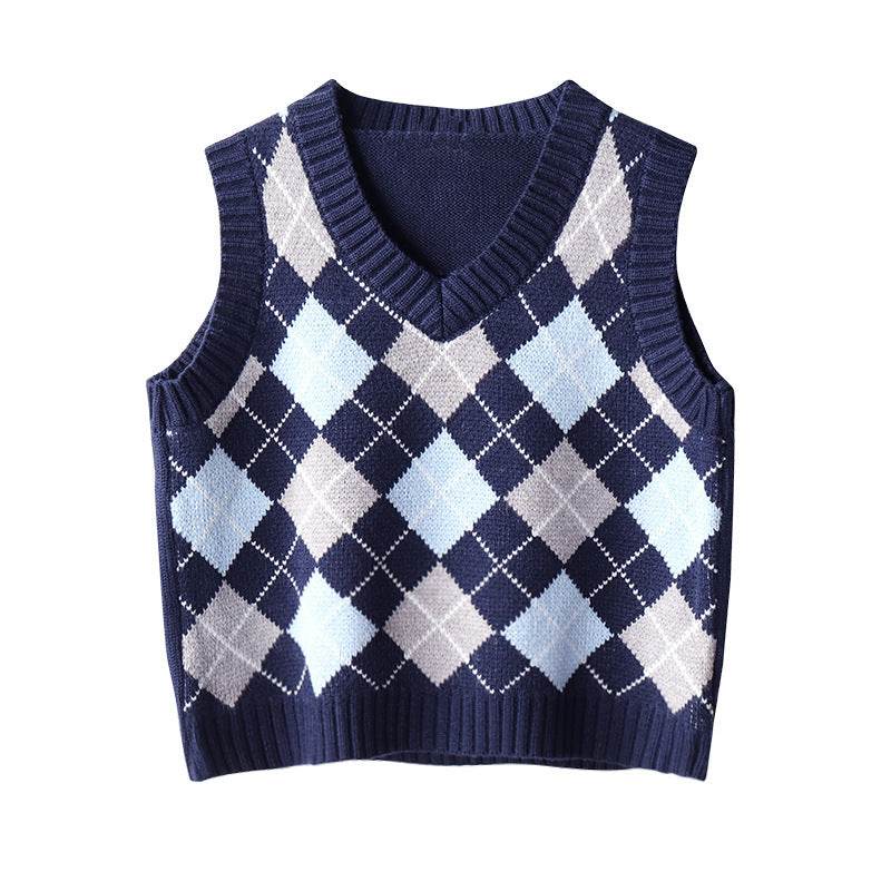 Outside Stacking To Wear Plaid Sweater Vest - Mubimart
