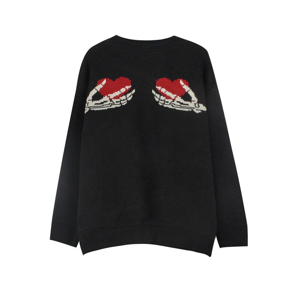 Mens Dark Trendy Brand Loose Round Neck Sweater