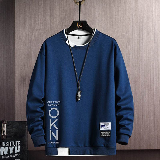 New Mens Casual Sweatshirts Hoodie Fake Two Pieces Letter Print
