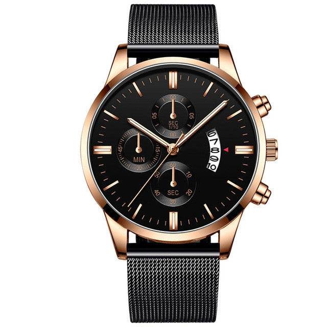Mens Business Luxury Watches For Men Mesh Band Quartz Watch