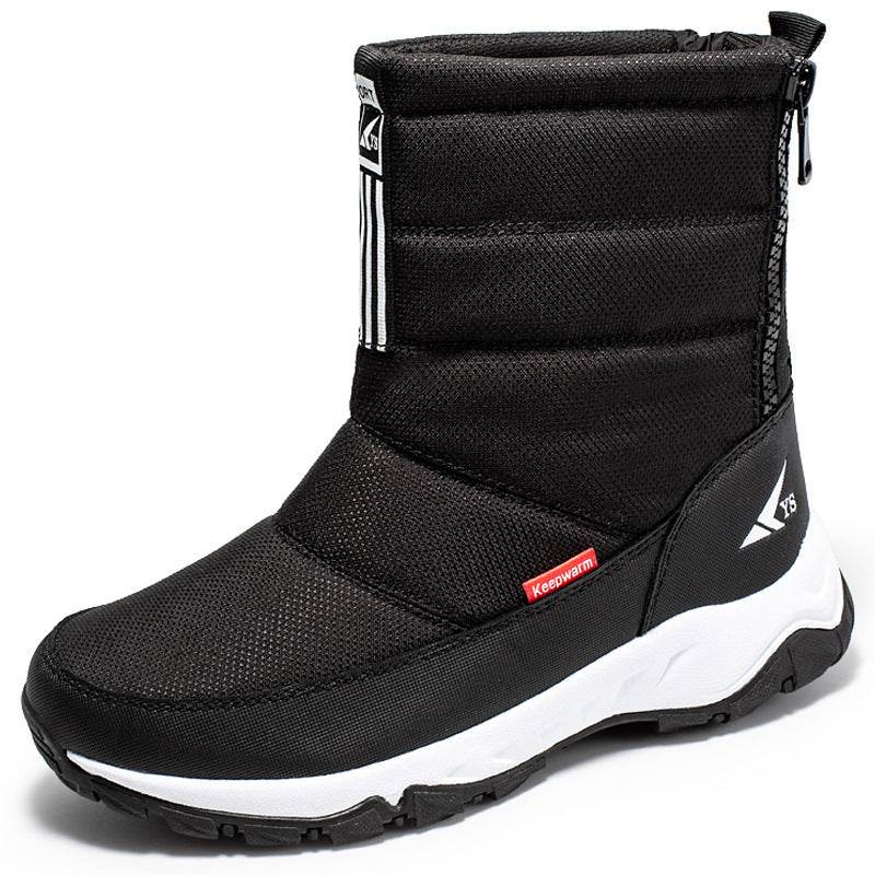 Men's Waterproof Snow Boots Short Ski Boots Fleece-lined Hiking Shoes
