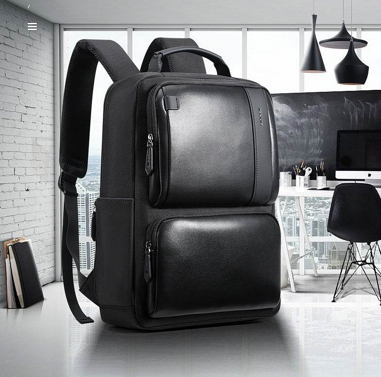 BOPAI Black Leather Backpack College Bag for Boys Mens Anti Theft Back Packs Travelling Bags Korean Style Men Backpack Schoolbag
