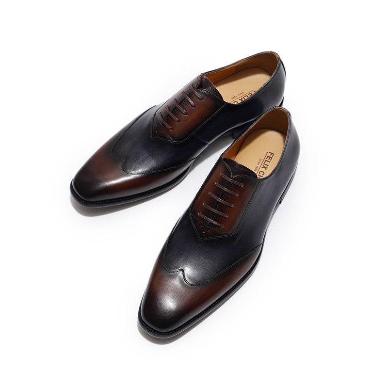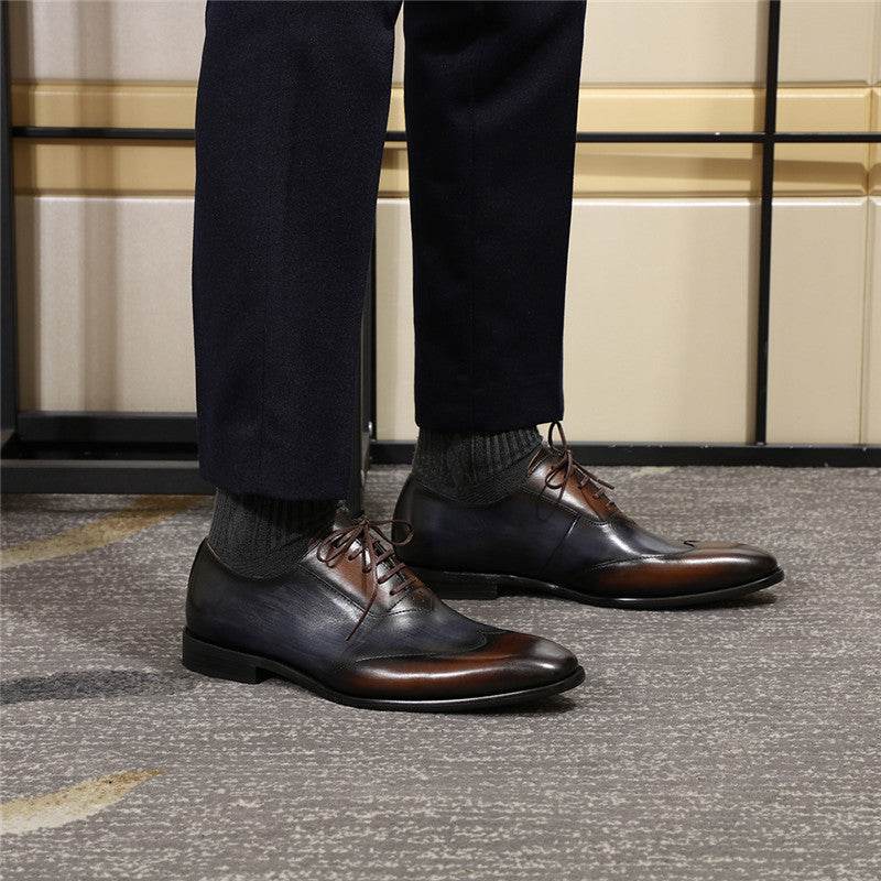 Leather Shoes Men's Wingtip Color Matching Oxford Toe Layer Cowhide
