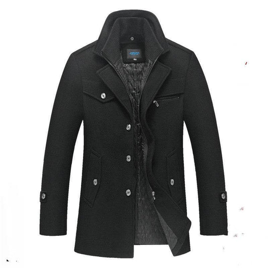 Men Woolen Coats Winter Slim Fit Warm Overcoats Brand Detachable Collar Casual Wool Blends Trench Coats SL-F053