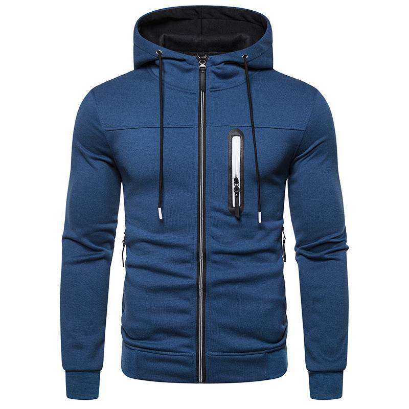 New Simple Splicing Zipper Hooded Long Sleeve Hoodie