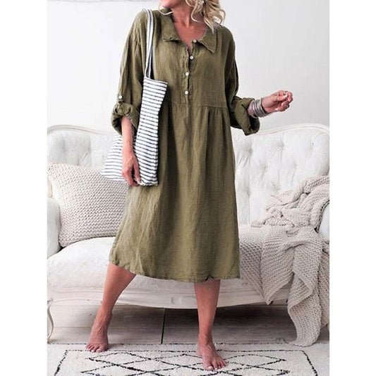 Plus Size V-neck 34 Sleeves High Waist Midi Skirt Bright Silk Party Dress - Mubimart