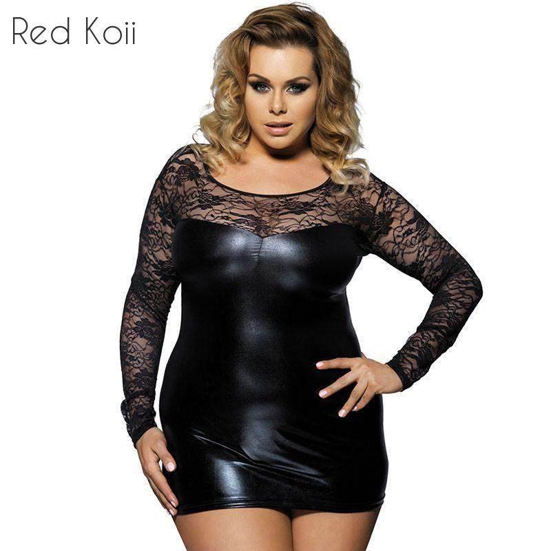 Mini Babydoll Dress Plus Size 6XL Black Faux Leather