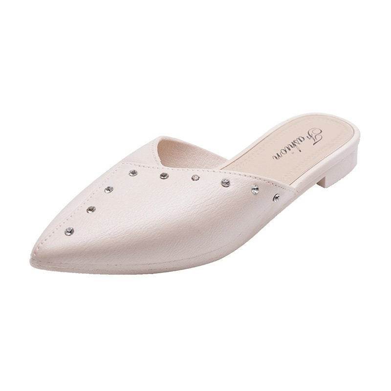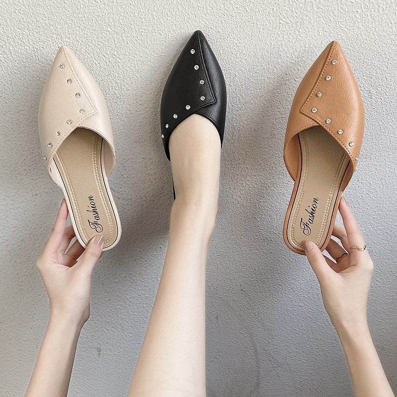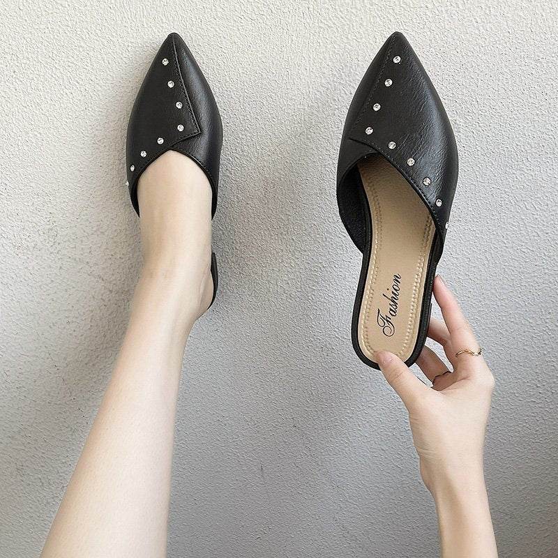 Flat Toe Cap Mules With Thick Heels And Lazy Slippers