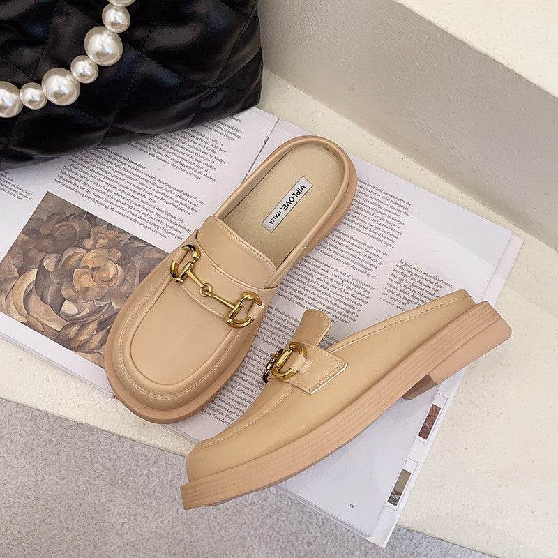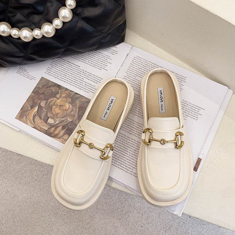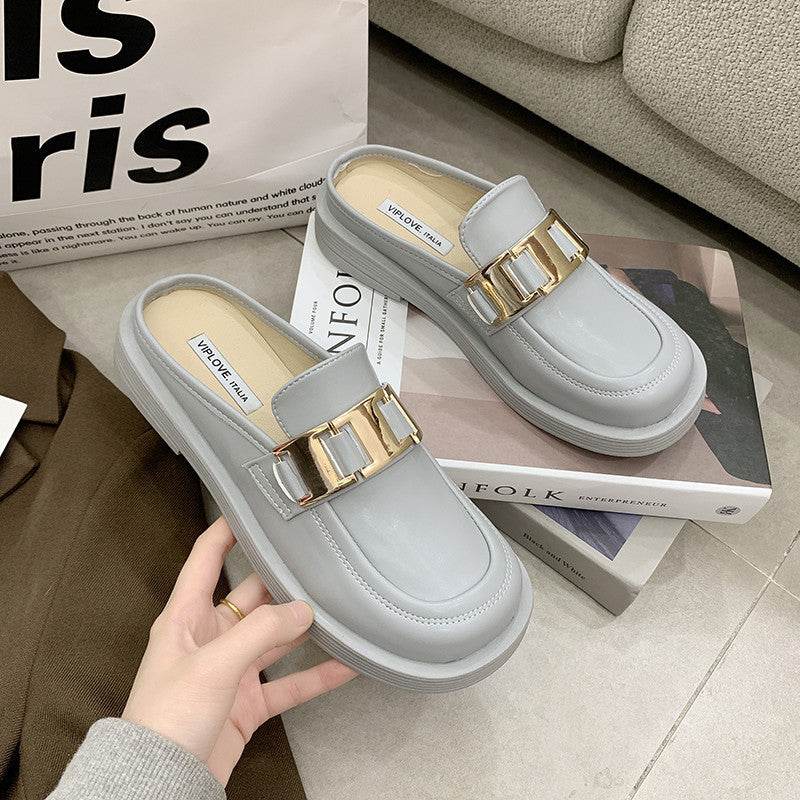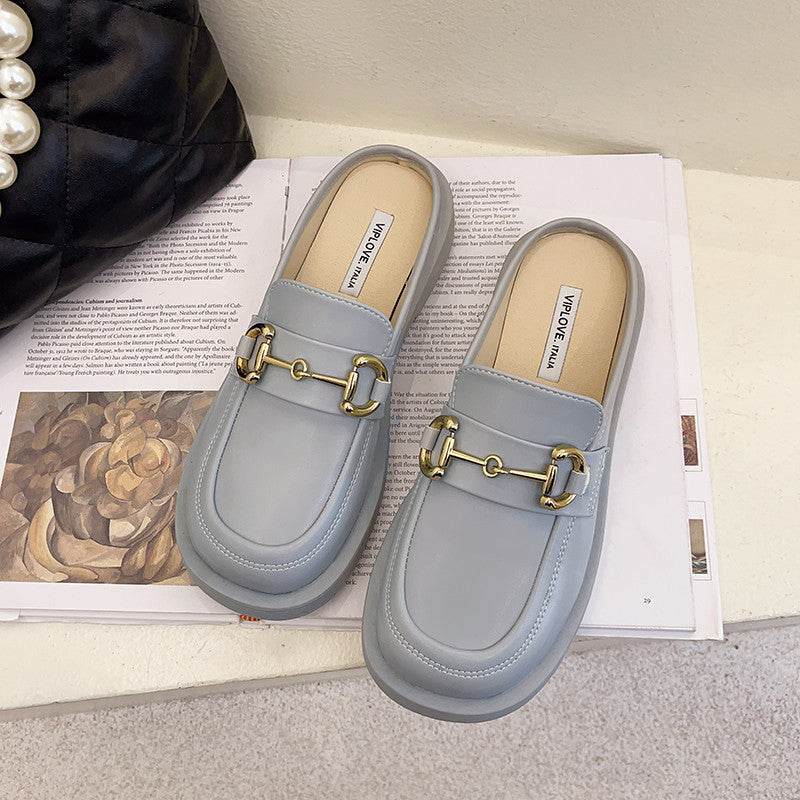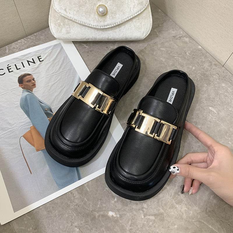New Thick-soled Chain Soft Leather Net Red Lazy Mules