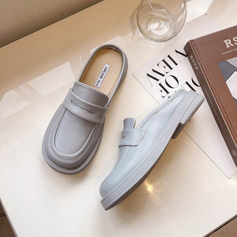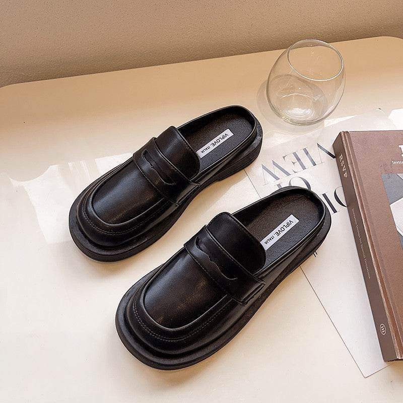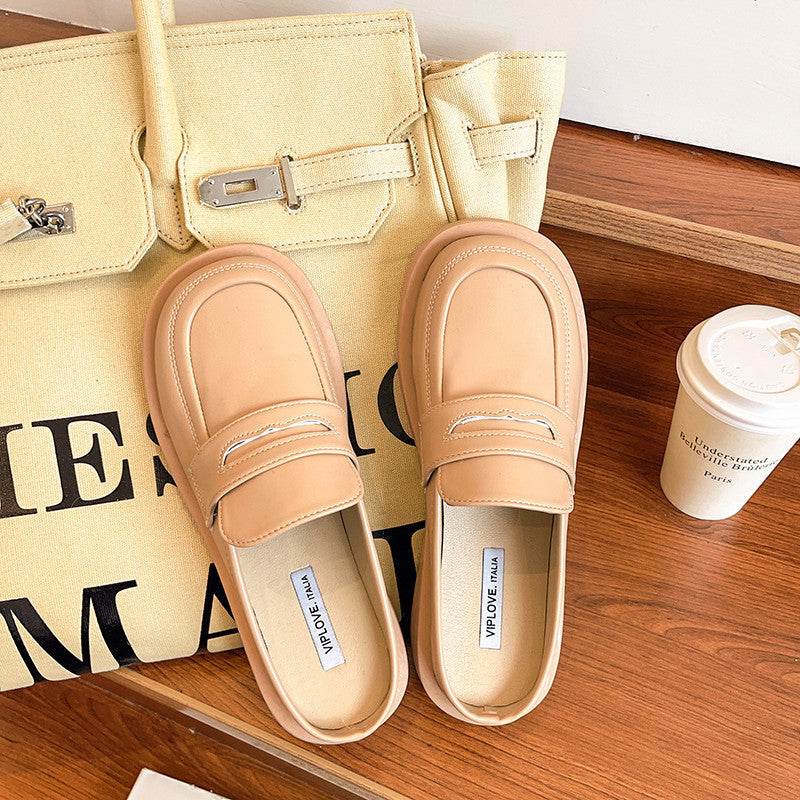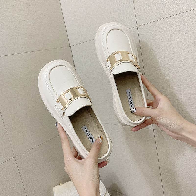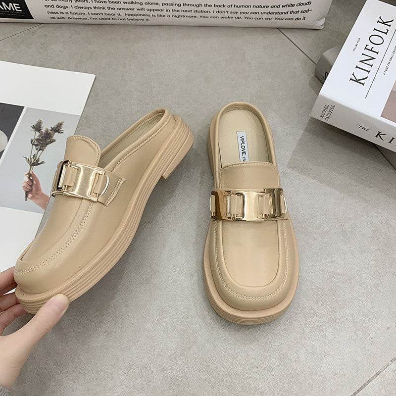 New Thick-soled Chain Soft Leather Net Red Lazy Mules