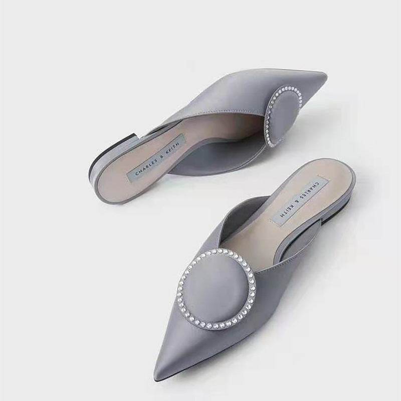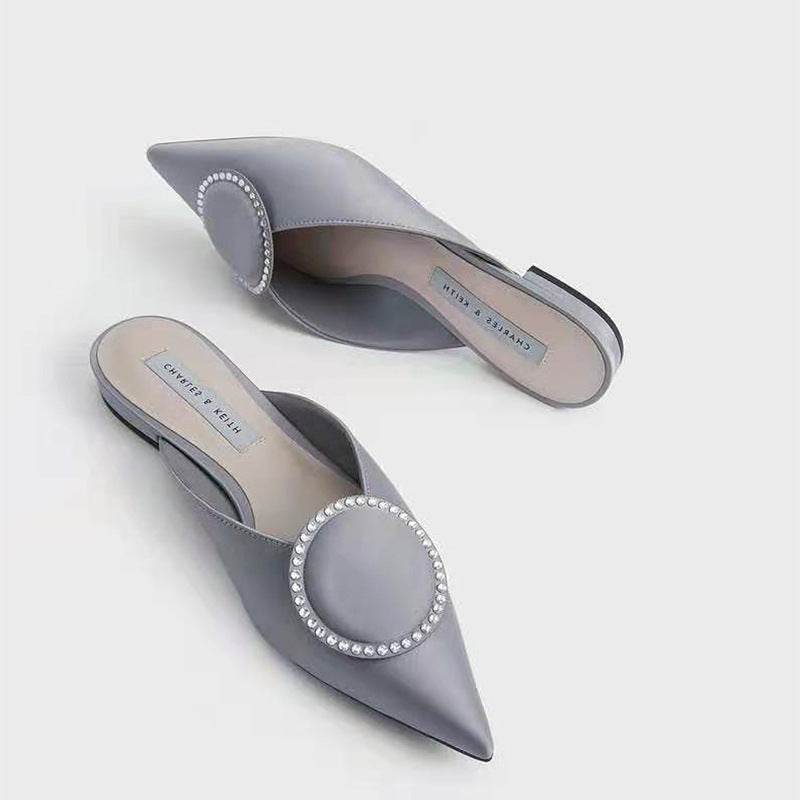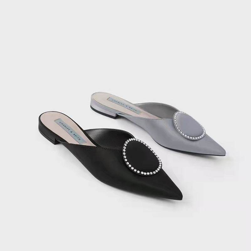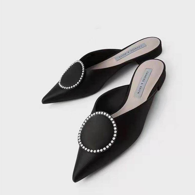 Shallow Mouth Toe Cap Metal Slingback Mules Silk Top Rhinestone Small Ck Flat Shoes
