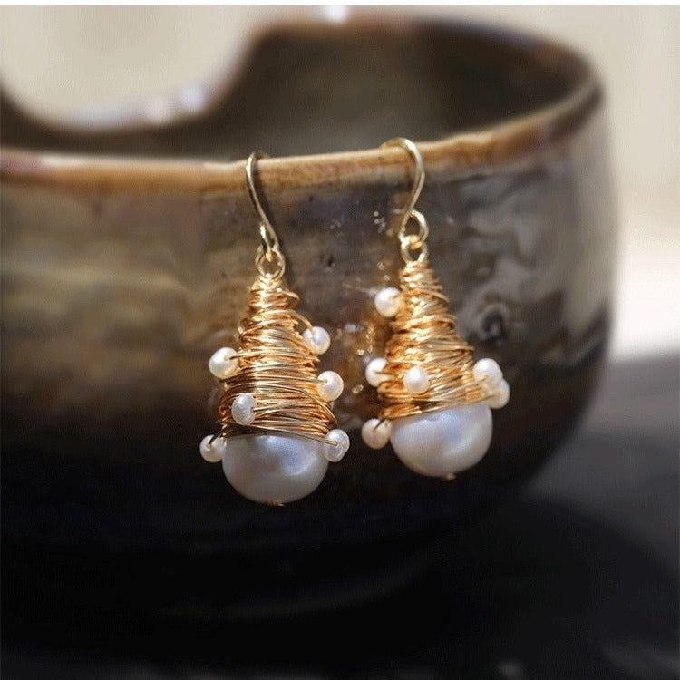 Light Luxury Women's Fashionable Handmade Wound Earrings With Freshwater Pearls