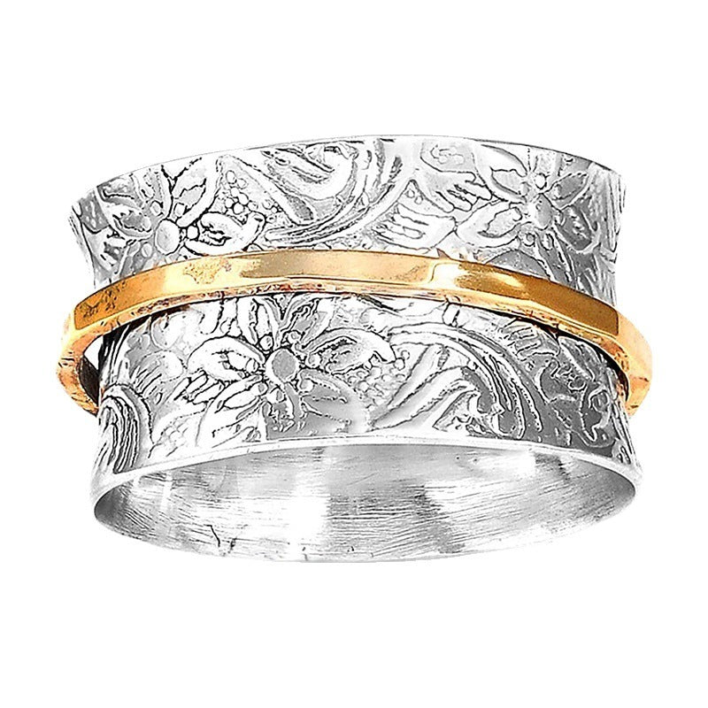 Wide Version Small Floral Simple Retro Floral Spinning Ring