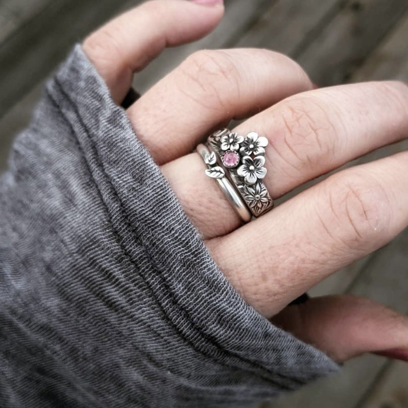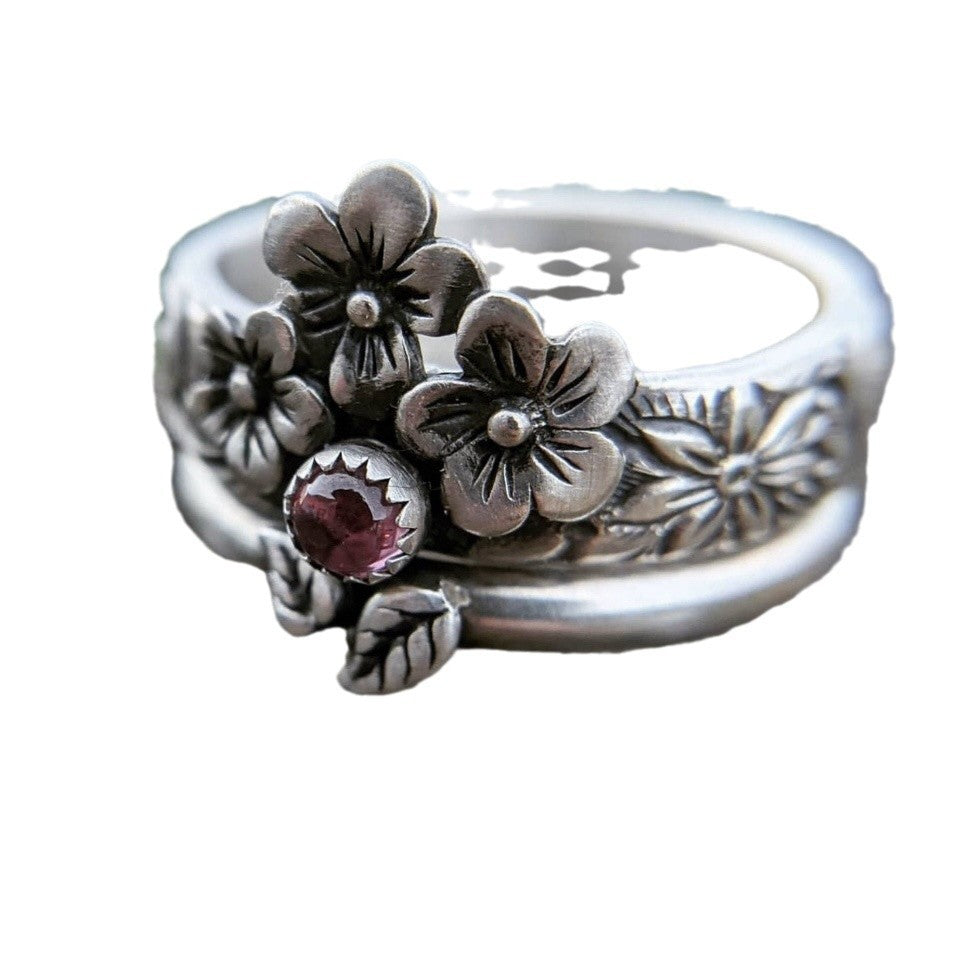 Women's Vintage Flower Couple Rings Imitation Thai Silver Handmade