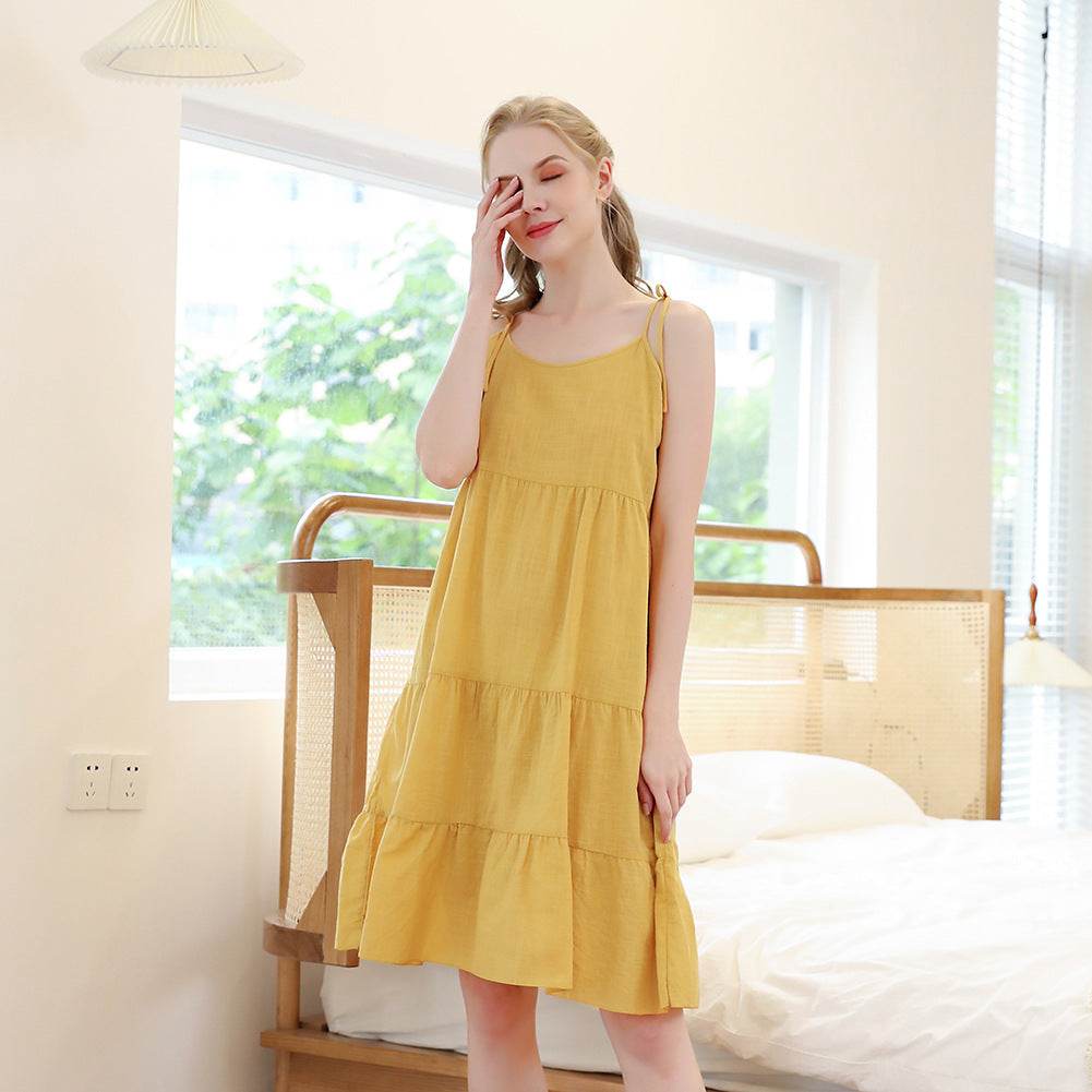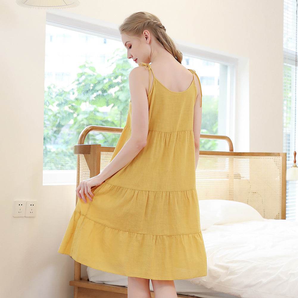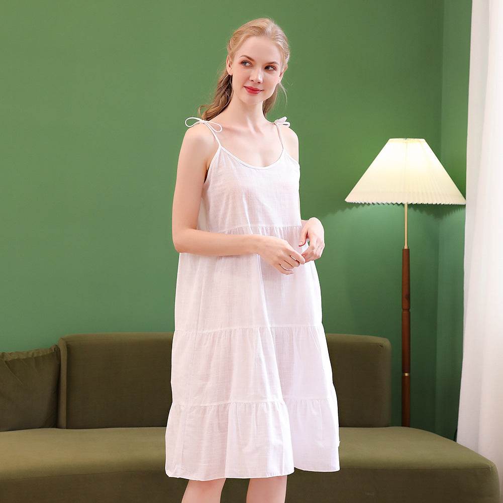 Plus Size Nightgown Sling Two Bow Tie Round Neck Rayon Nightdress Length