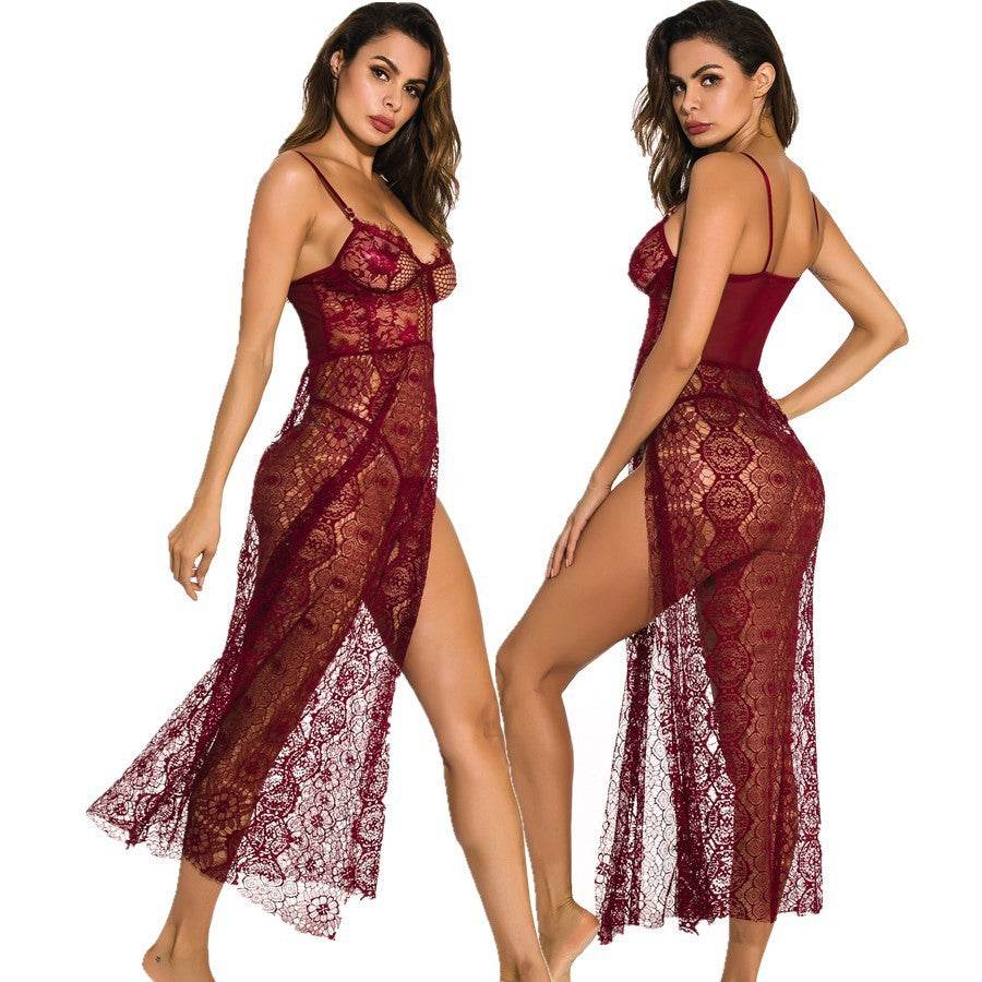 Underwear Long See-through High Slit Pajamas Nightgown Nightgown