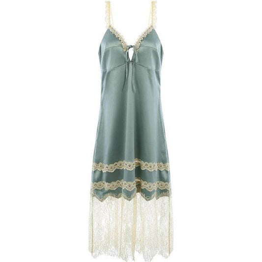 Plus Size Nightgown Sling Two Bow Tie Round Neck Rayon Nightdress Length