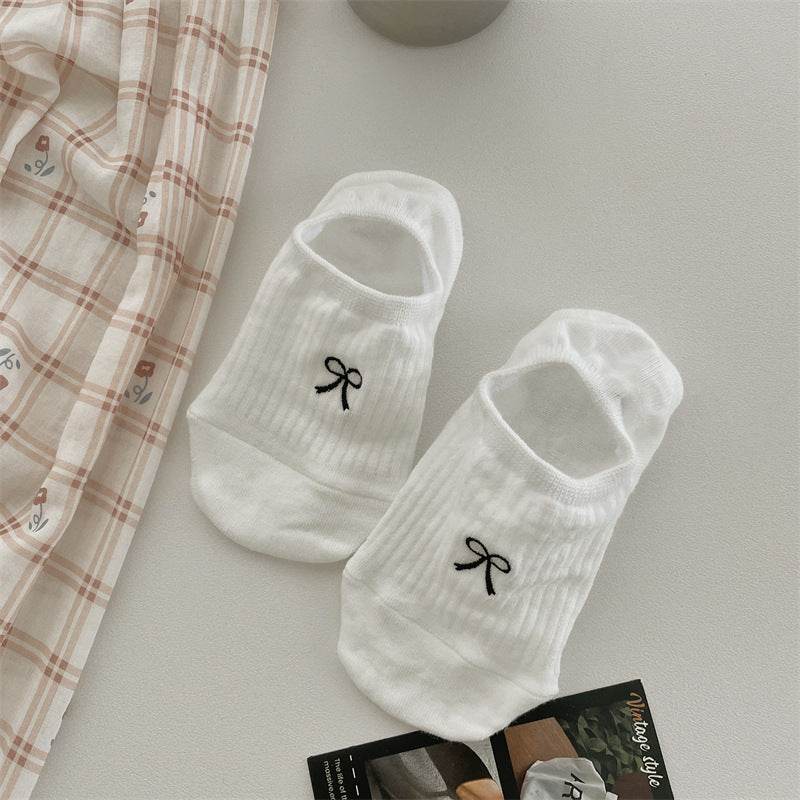 Bow Embroidery Cotton Women's Low-cut Liners Socks