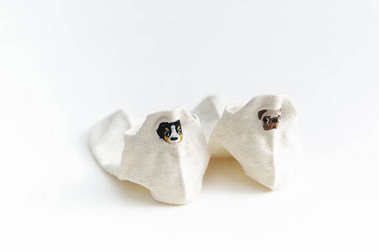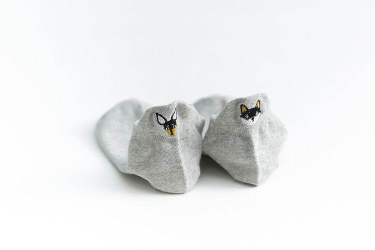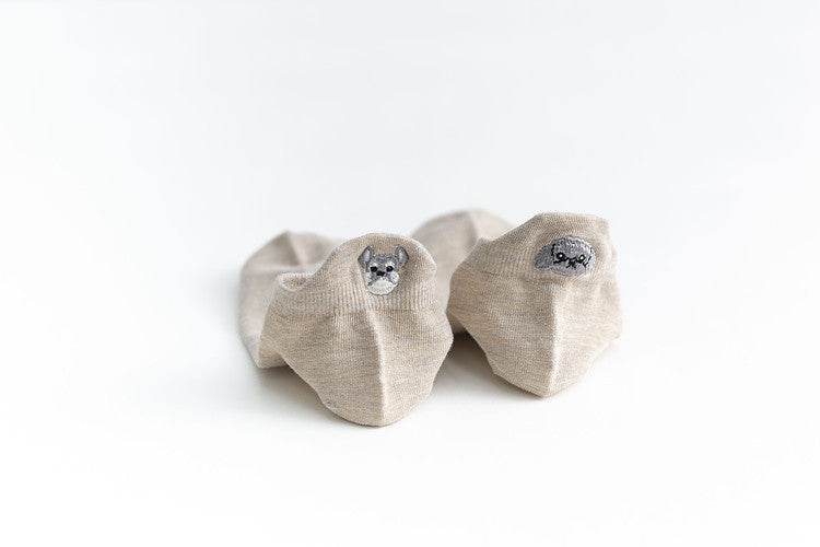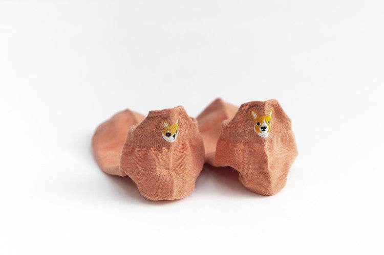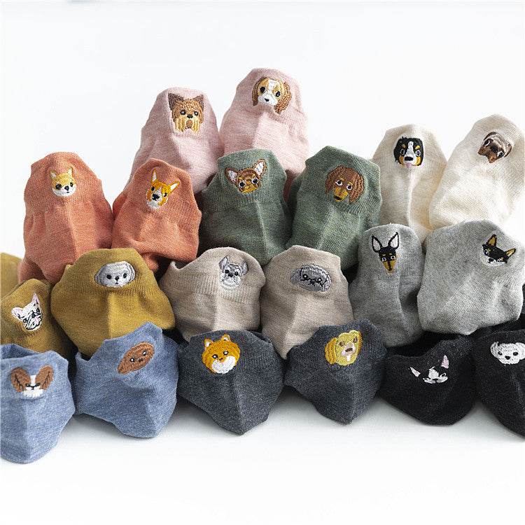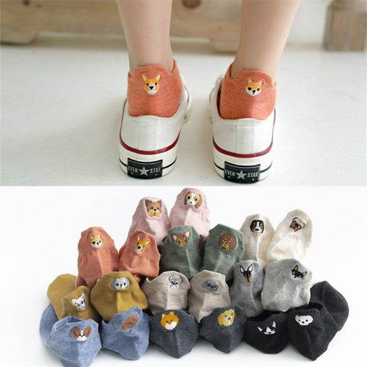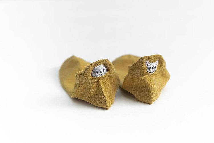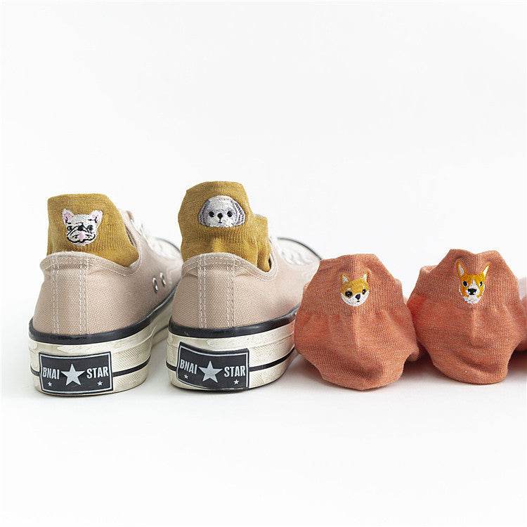 Cute animal cotton low-cut boat socks Ladies embroidery student socks