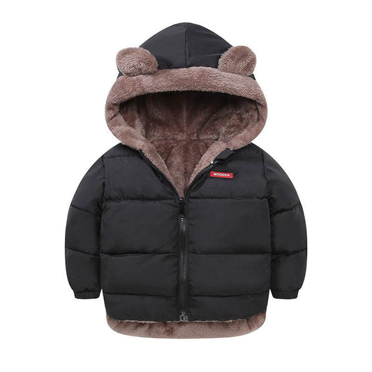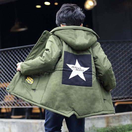 Fashion Boys Thicken Letter Print Hooded Cotton Jacket - Mubimart