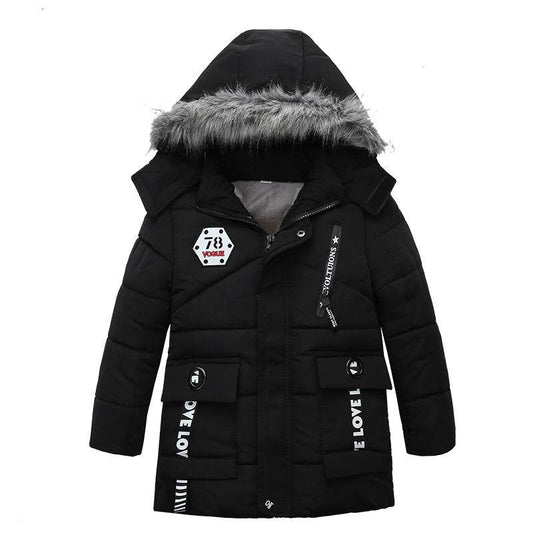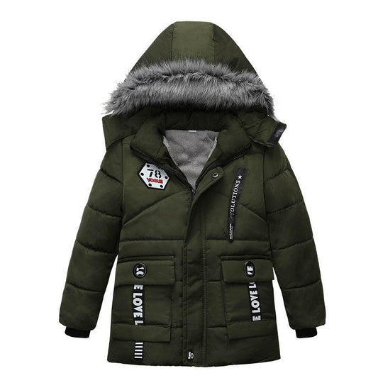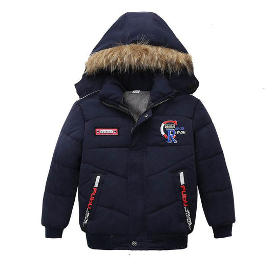 Children's Hooded Cotton Coat With Fur Collar And Cotton Quilted Jacket - Mubimart