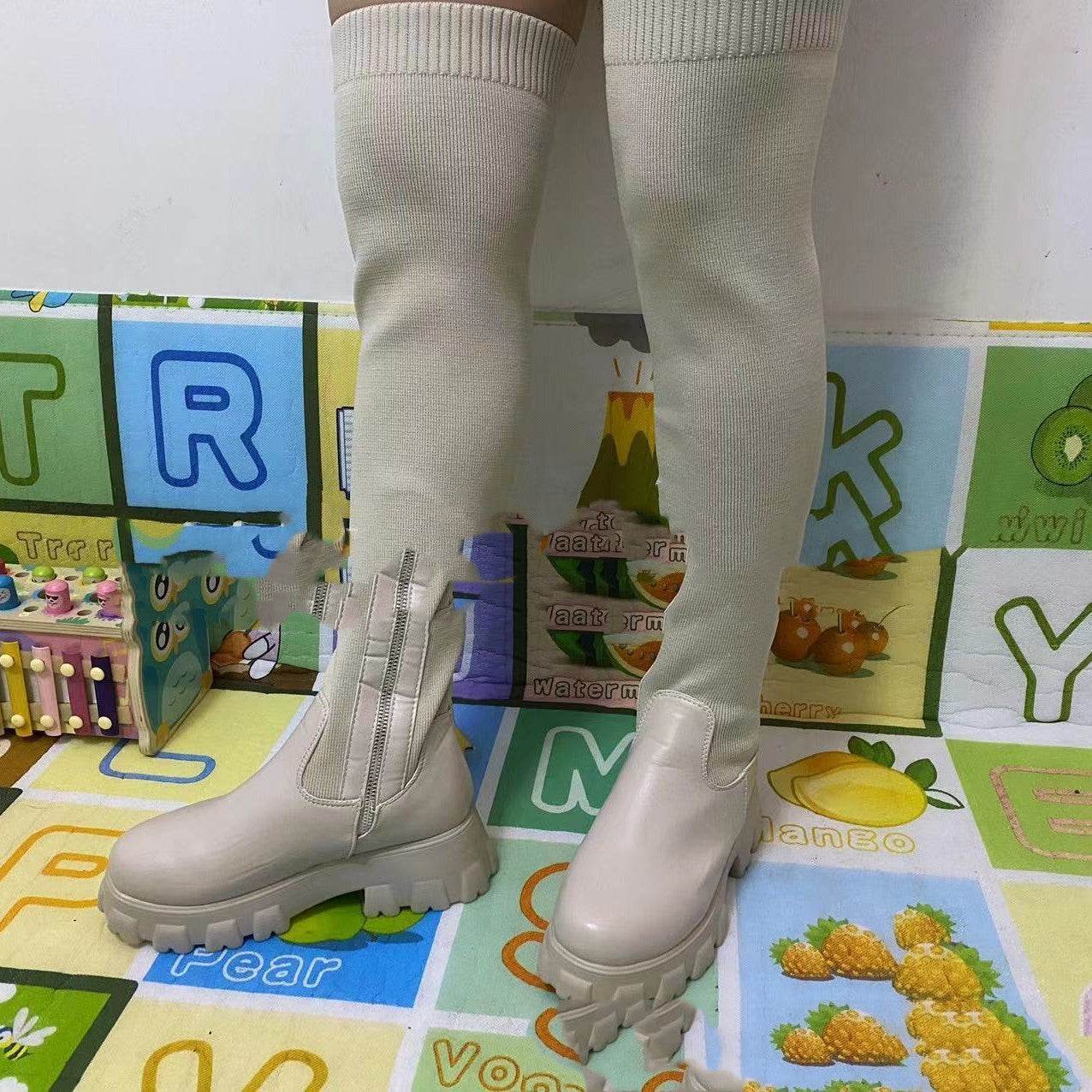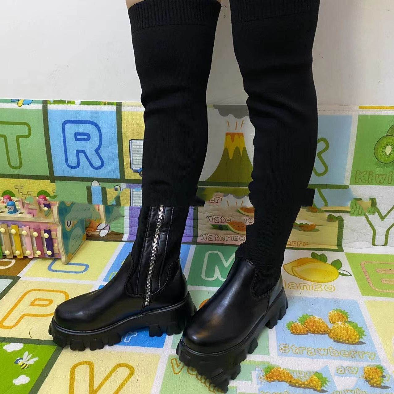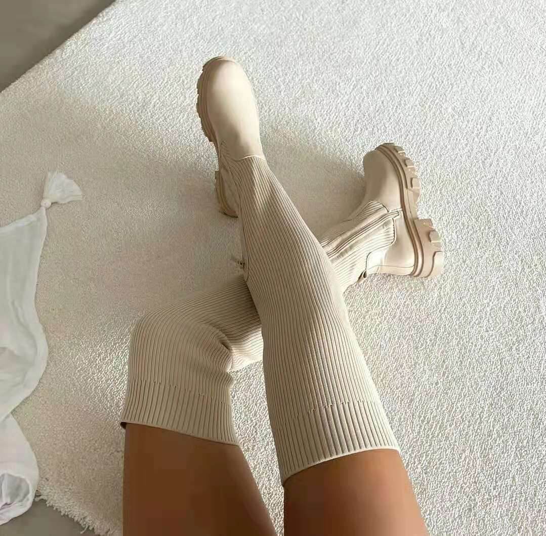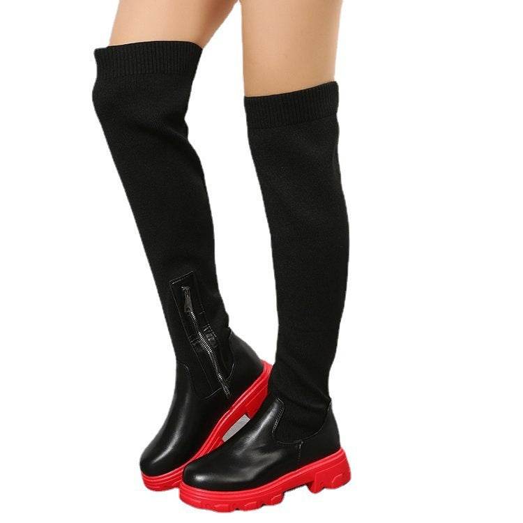 Socks Boots Female Knitted Platform Over-the-knee Boots