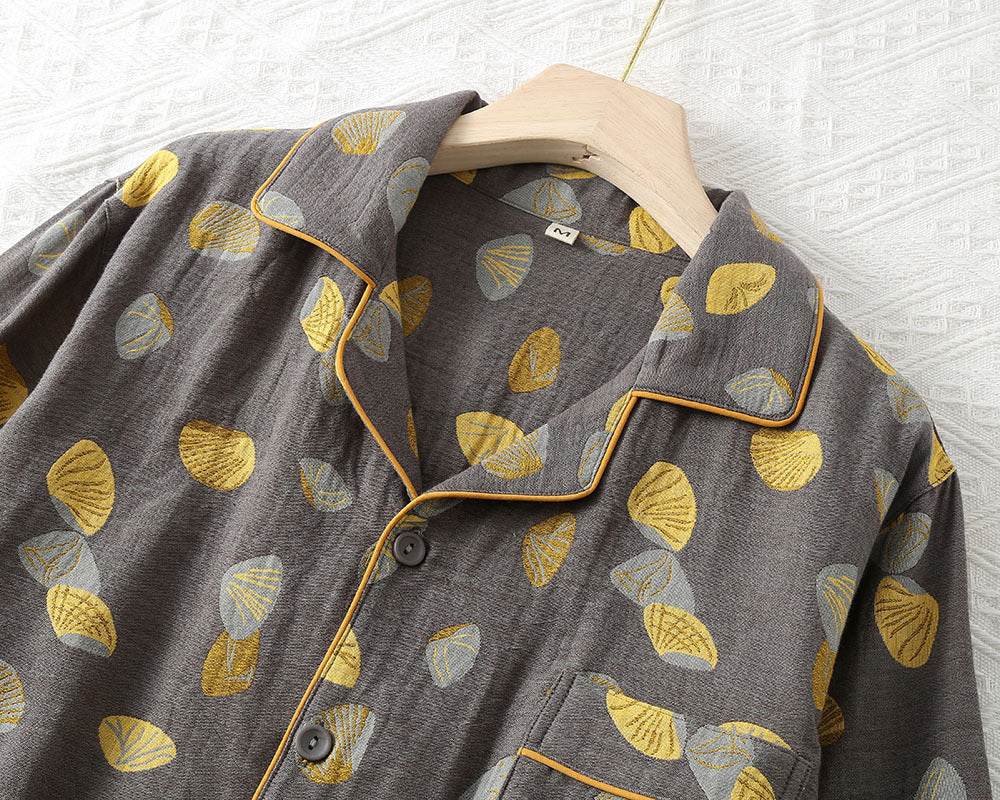 Pure Cotton Double-layer Sheer Men's Long Sleeved Jacquard Pajama Set - Mubimart