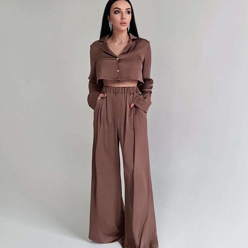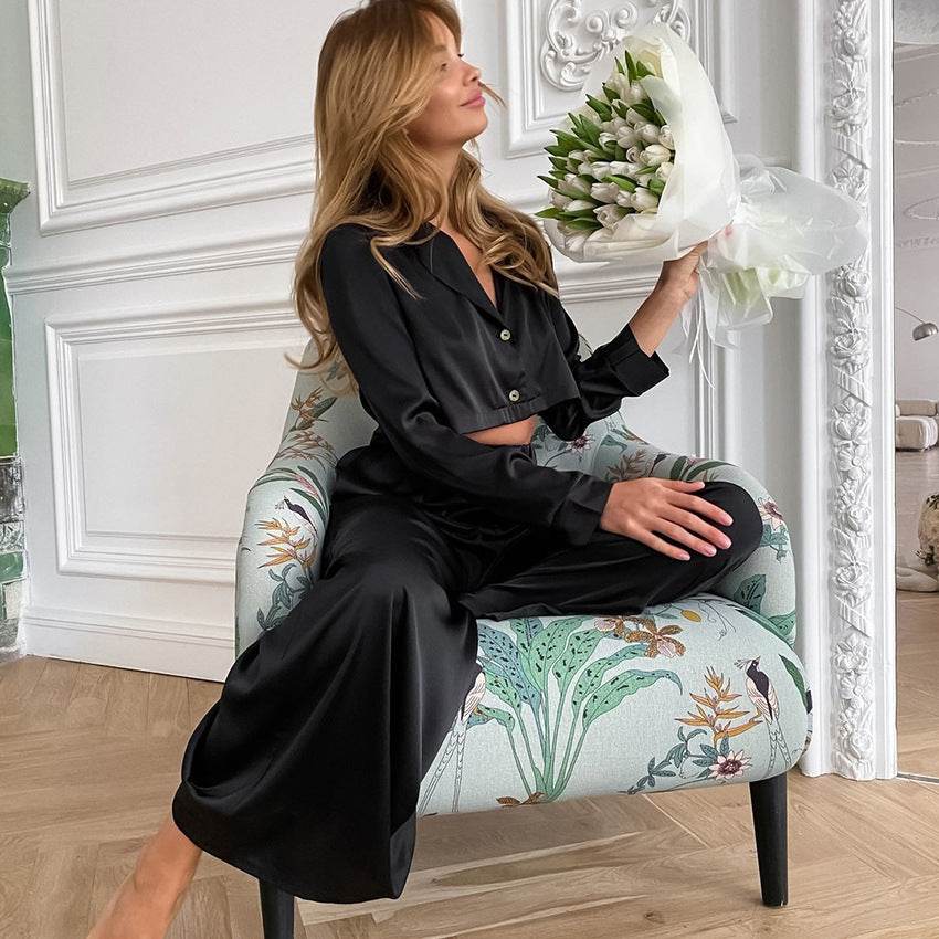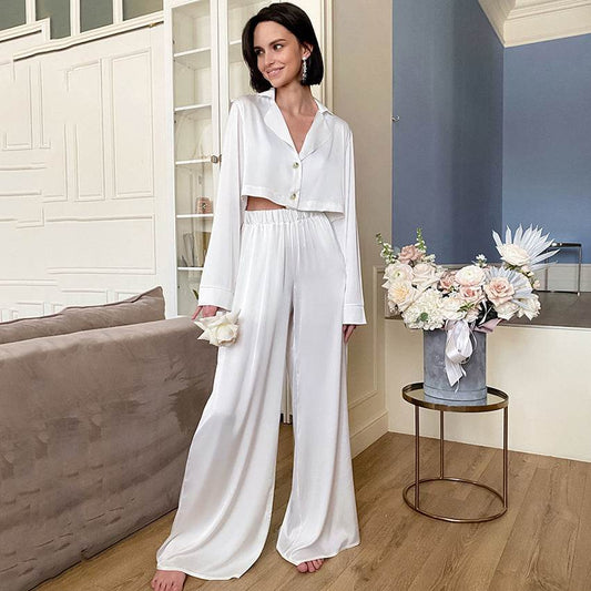 Fashion Short Top Two-piece Set Baggy Pajama Pants Ice Silk Ladies' Homewear