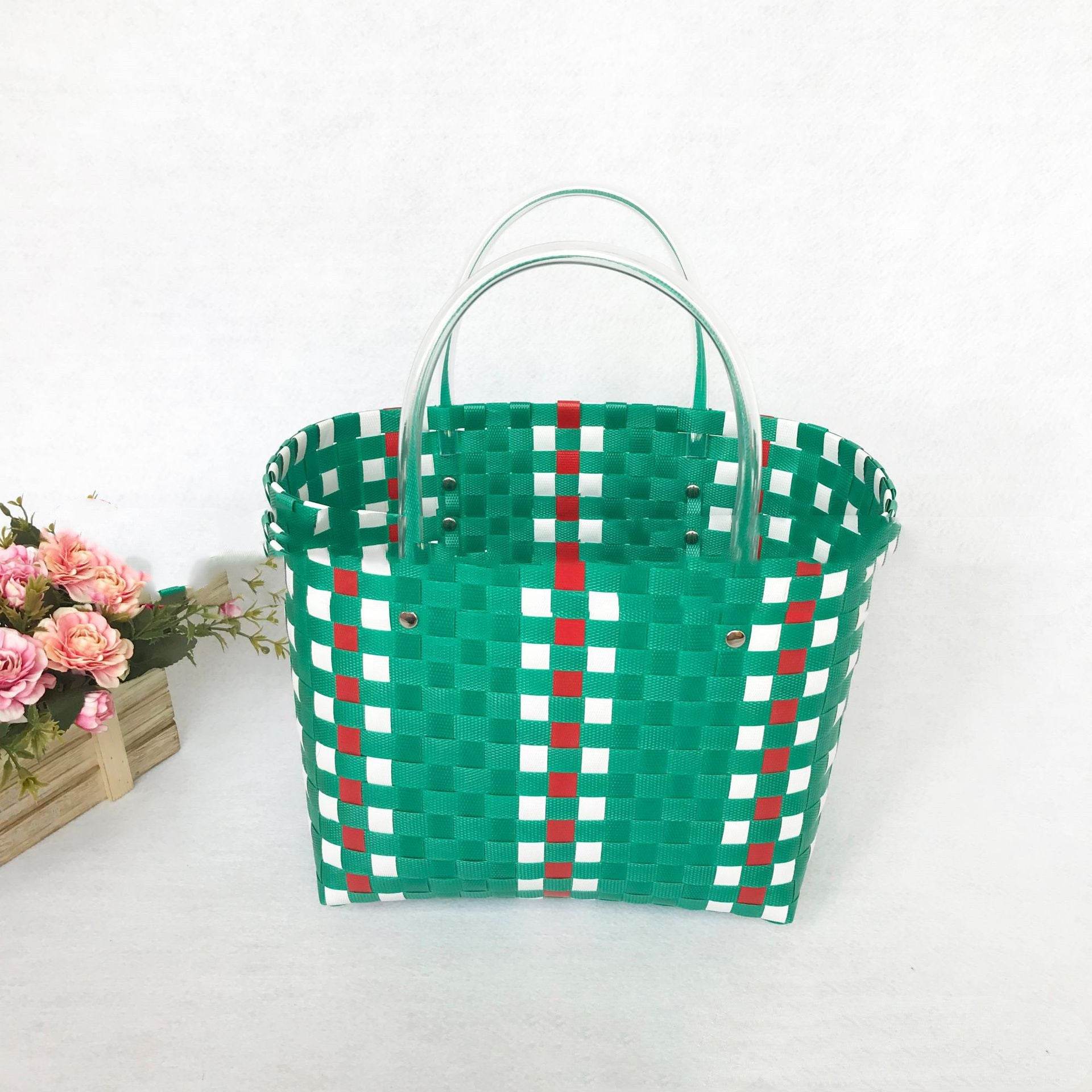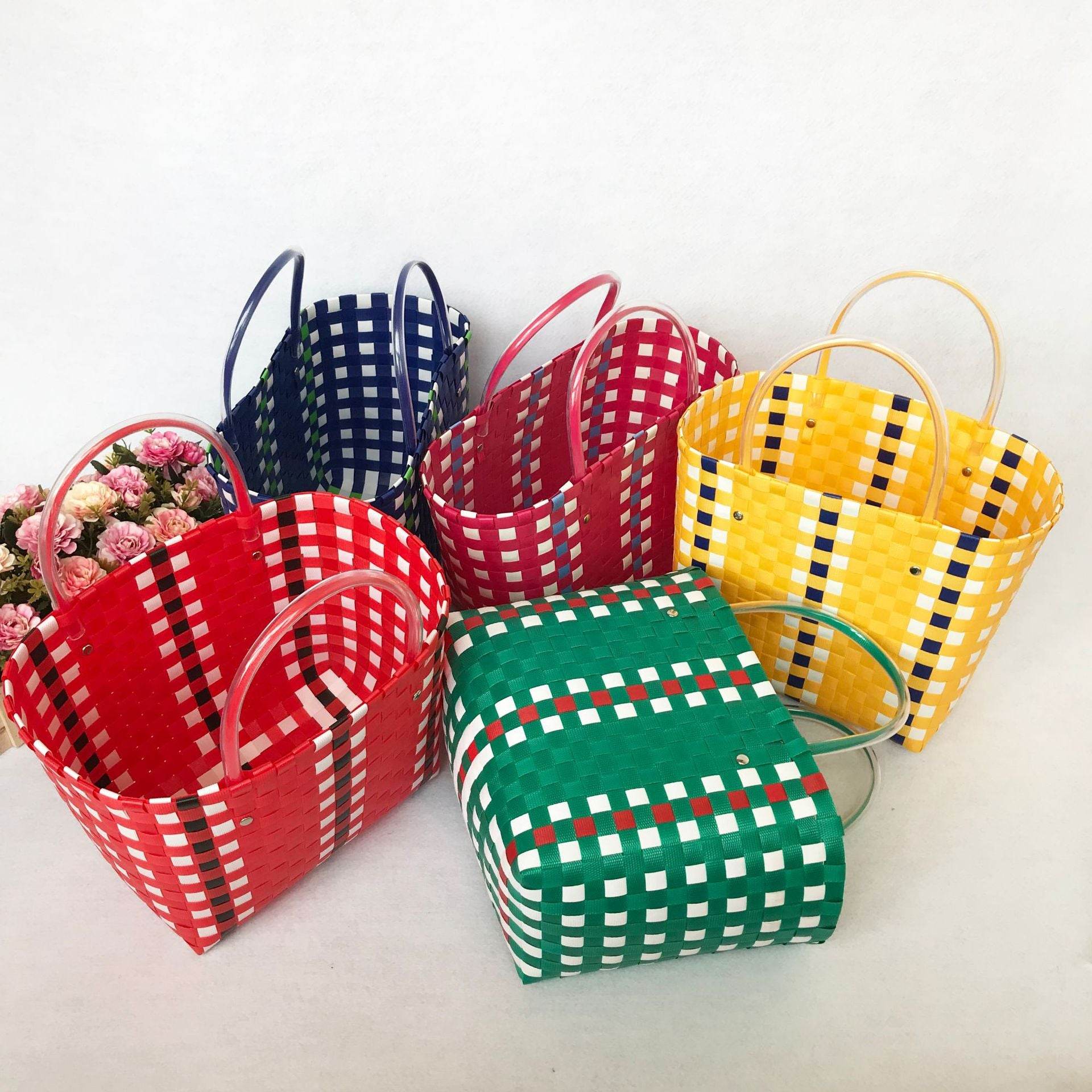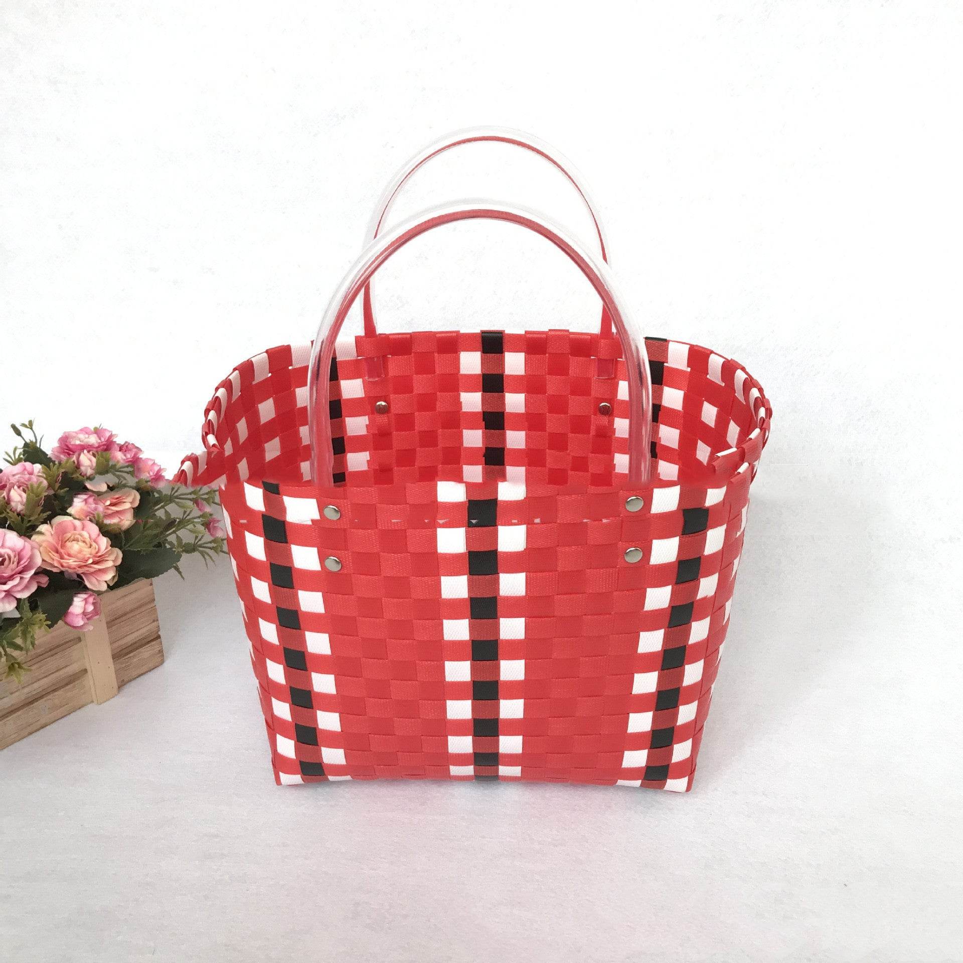 Plastic Vegetable Basket Hand-Woven Shopping Storage Basket Bath Bath Basket